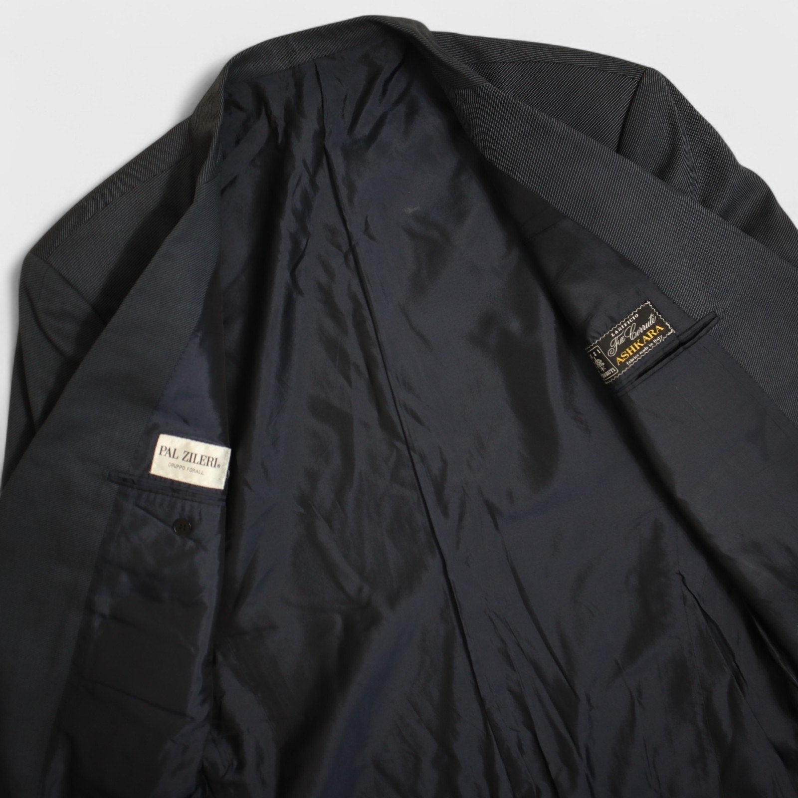 Pal Zileri X Cerruti 2 Piece Suit US 42R Blue Wool Silk Whipcord Pleat 3 Button Made in Italy